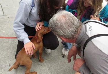 Bringing friendly pets to senior centers to brighten days and encourage adoptions.